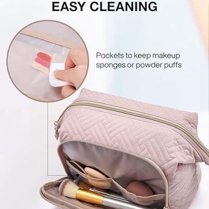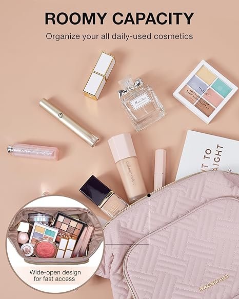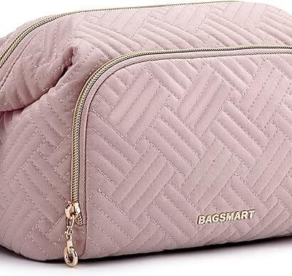 - BAGSMART Travel Makeup Bag, Cosmetic Bag Make Up Organizer Case,Large Wide-open Pouch for Women Purse for Toiletries Accessories Brushes