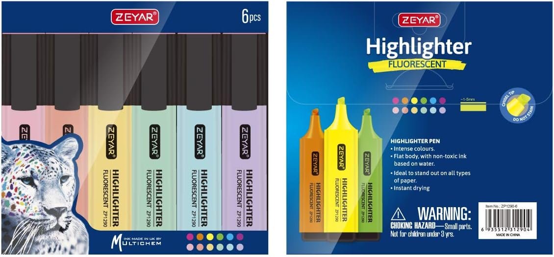 • USA Brand ZEYAR, AP Certified. BRIGHT COLORS: the assortment of Great bright Fluorescent or Macaron inks protect and emphasize your handwritten texts, No shadow on the next page